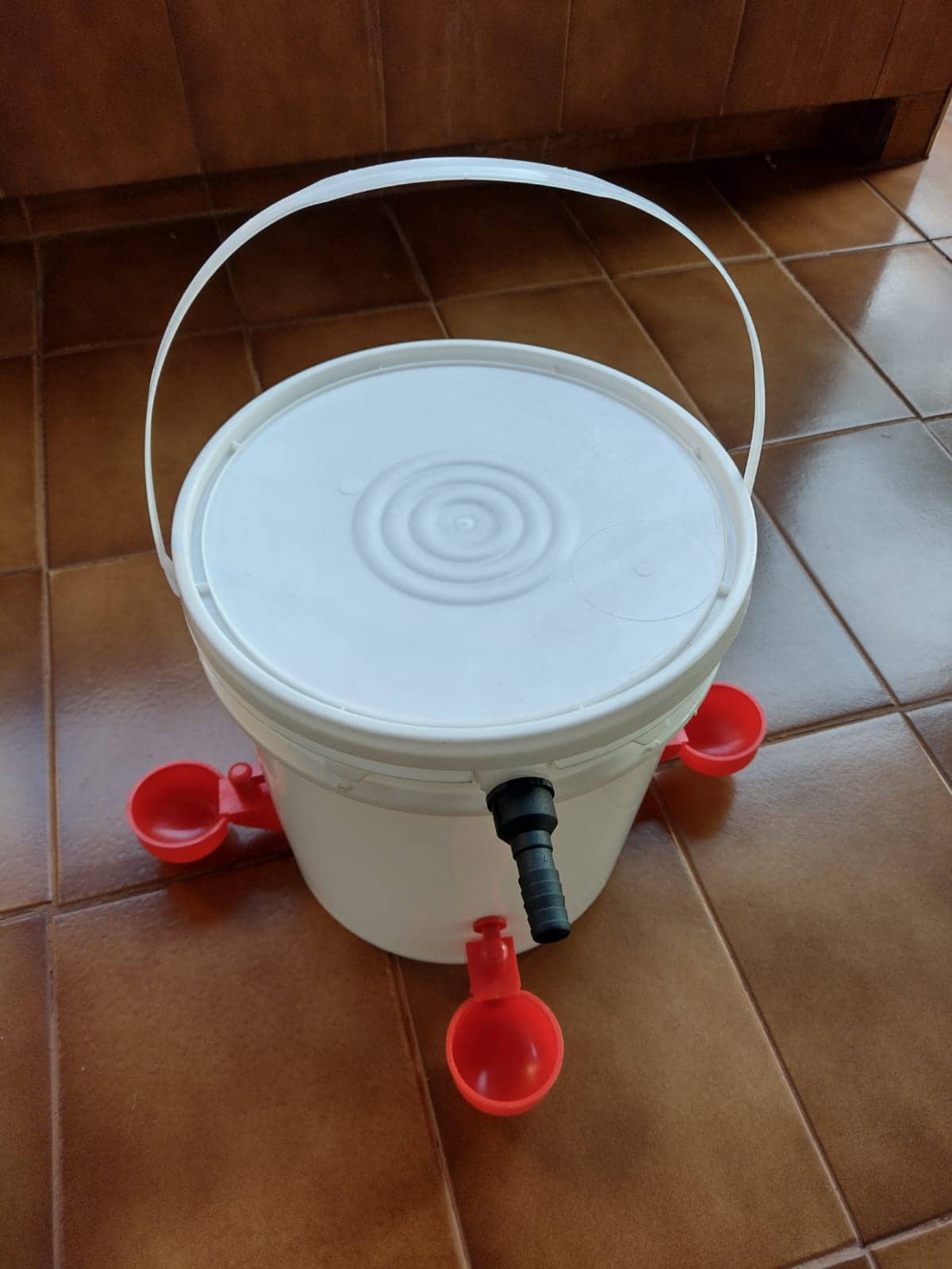 Reservatório De Água Com Boia e 4 Bebedouros Automáticos Tipo Copinho Para Aves Modelo 2